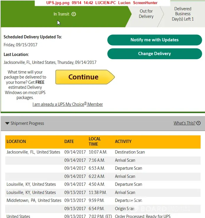 Last location of my package was at the UPS distribution center, never moved from there. They had to do a search for two weeks, never found the package, never delivered and refused to pay despite me purchasing shipping insurance. UPS says the insurance is purchased third party at the UPS store and the UPS stores are not owned or operated by UPS. so they are saying UPS stores are NOT really part of UPS despite having a UPS sign on the building.