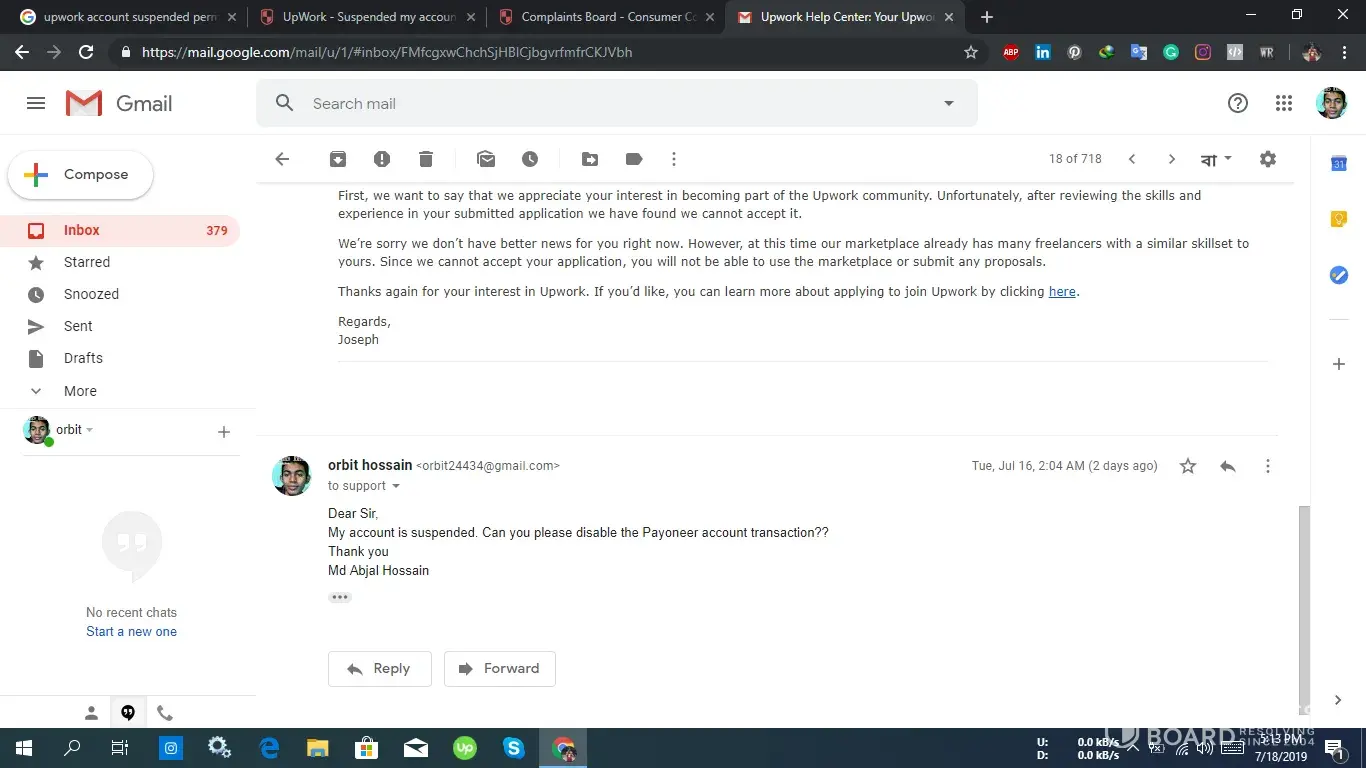 Upwork suspended my account without notice