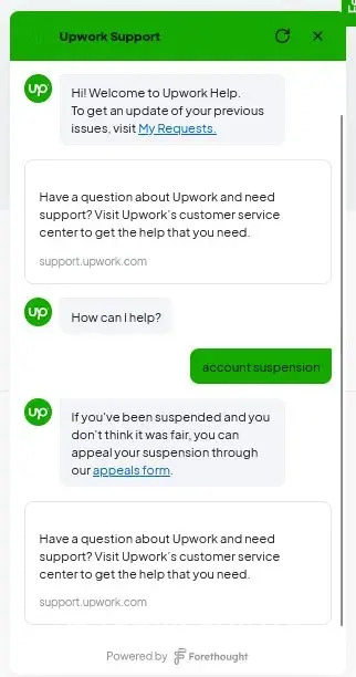 That corporate number - and every other attempt to speak with a human in real-time (or even near-real time) has been replaced by a referral to the Upwork Customer Service & Support website. This experience is an unfriendly, automated system where articles bots reply with reading material.