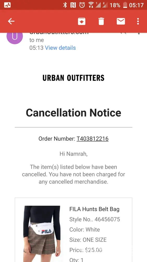 I've called multiple times; received no information or reasons for this. So, if an order is cancelled, it seems to me someone would be able to explain why? UO doesn't want to deal with it (apparently). This is just poor customer service where employees don't want to help with the problem. Unfortunately, it has been on multiple occasions with UO.