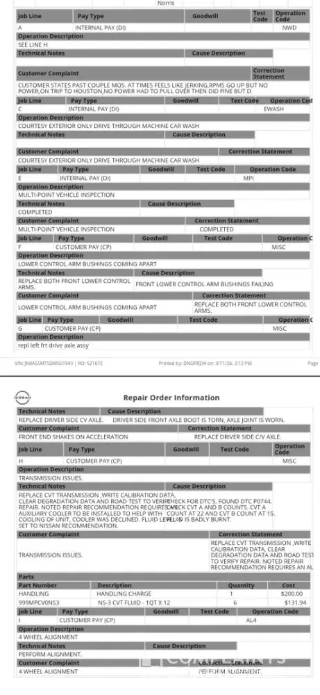 Desired outcome: my transmission axles oil leak a full apology, me/ Nissan records of replacing the transmission, out of pocket lie or full reimbursement ( 2019 contract).