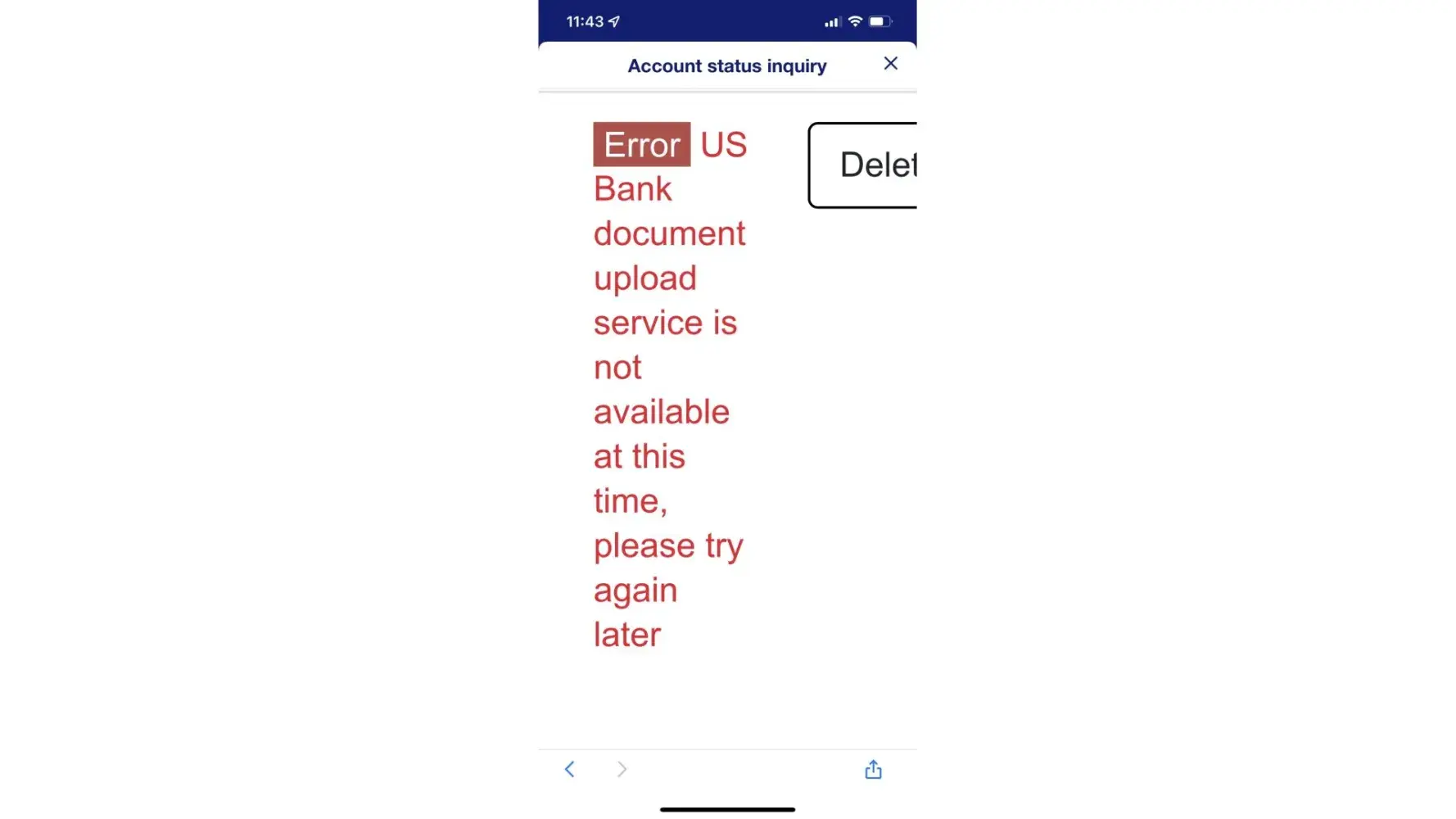 ERROR: US BANK DOCUMENT UPLOAD SERVICE IS NOT AVAILABLE AT THIS TIME, PLEASE TRY AGAIN LATER."