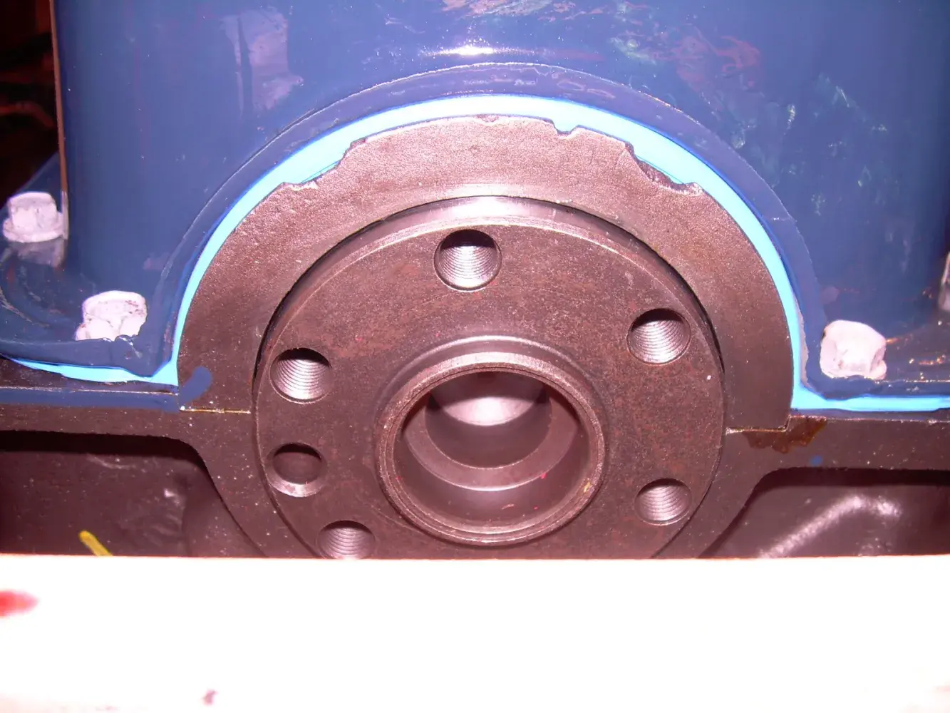 And any remanufactured long block, unless it's painted or immediately warehoused in a heated, dry facility, is going to develop surface rust within a few hours sitting on a cold cement floor in this ( Puget Sound ) climate. Big deal. Paint it.