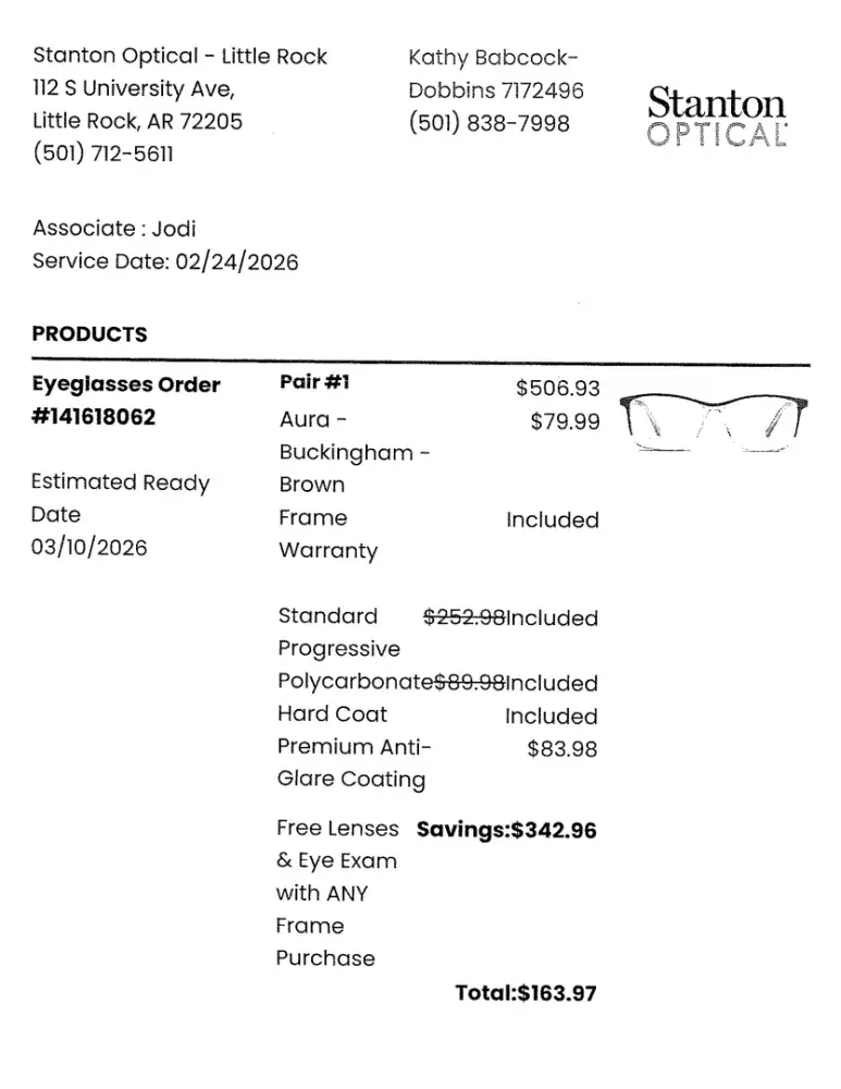 I went to Stanton 2/24/26 deal was free eye exam and free lenses with purchase of any frames. I was charged $79.00 for exam and then $163.47 (Buckingham frames $79.99 and Premium Anti-Glare coating $83.98) Did not deduct $79.00 or refund it.