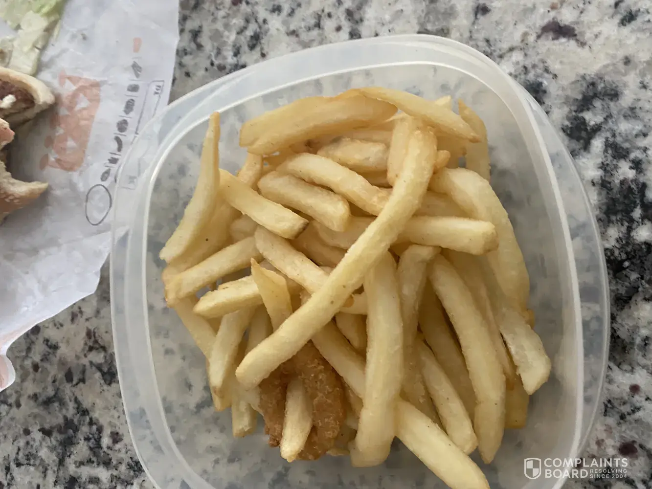 I went there on 8/30/21 around 10:45a & ordered the number 10 with a large fry & medium Dr. Pepper. Got home & nearly broke a tooth biting into a hard chicken sandwich. It was obvious it was old & the person who made it had to have known. I called to complain & told them I am not driving all the way back today but will bring it back tomorrow. She was like you have to bring the whole meal back with the receipt. I was never given a receipt & my autistic son was already eating the fries. I was so angry, I drove over & threw the chicken sandwich & soda over the counter. Not at anyone but a customer on the other side chased me out saying I assaulted the worker & took my license plate info. There site has many complaints & the officer who came to my home also said they told him they gets lots of complaints about their food. Obviously the franchise owner is serving old food & making the company look bad. They always have a menu board down line down too & make you wait a few minutes before even addressing that you are there. I hope my actions help them to serve fresh food others.
