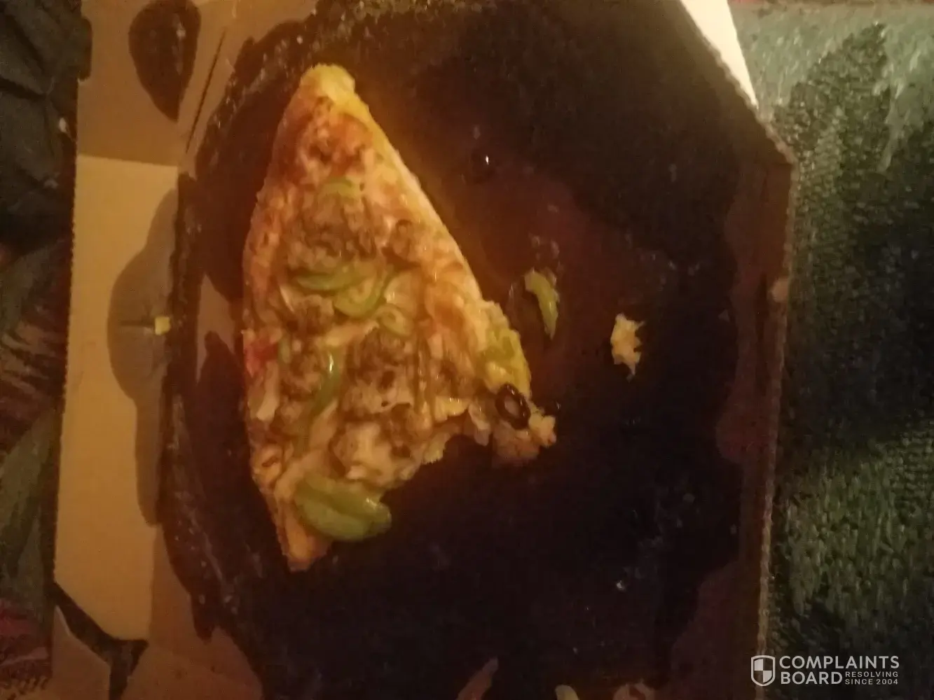 I ordered a pizza n cinnamon twists on 9/20/2019 @ 11:30 pm. First of all i live about a mile away from the store n the website said they wont deliver to me because i am out of range. Second... we picked up our order and the grease was running out of the box onto my jeans before i could get out of my car. Eating it was much worse and i felt sick to my stomach after just 2 pieces. I dont complain about food often but this experience was disgusting !
