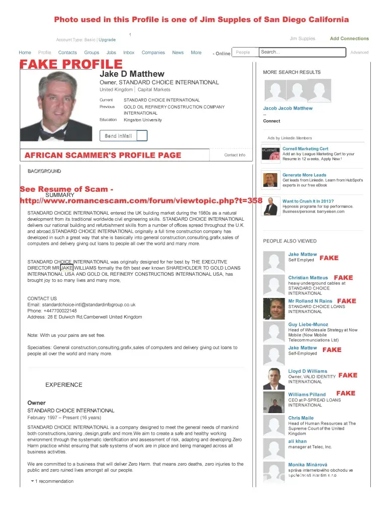 LinkedIn.com - African scammers using fake profiles and photos of other users