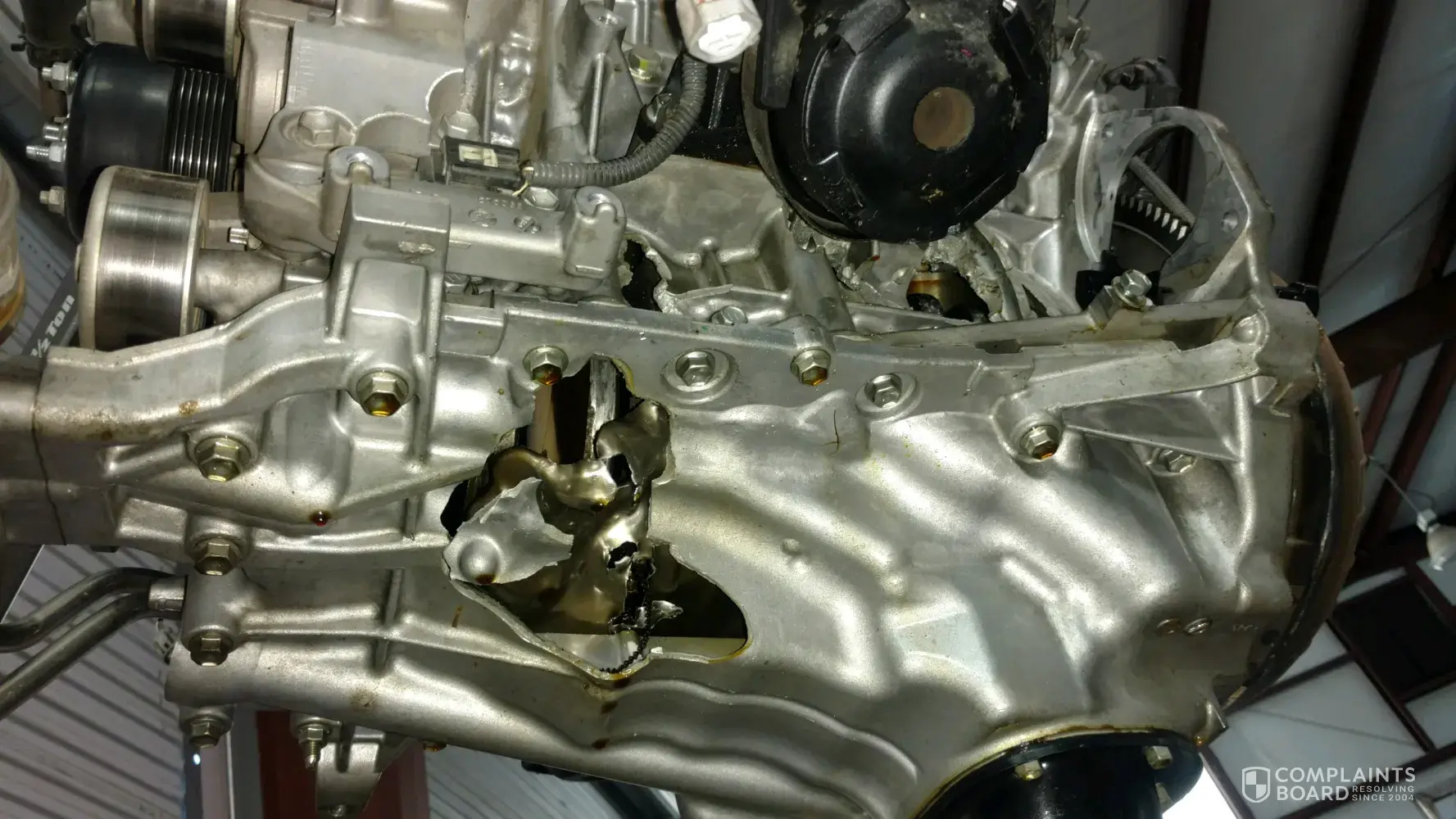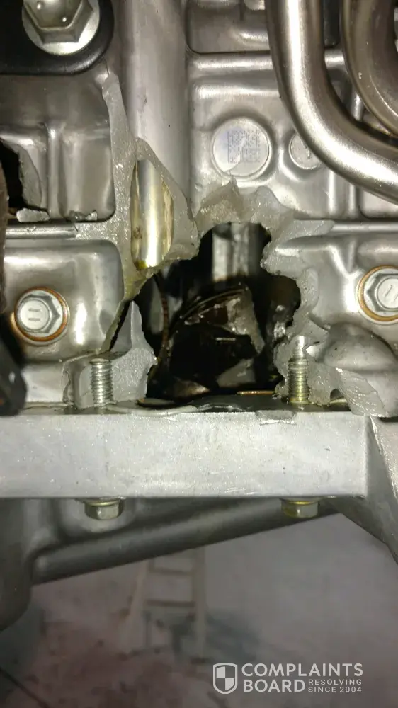 The pictures below show the damage to the engine. The mechanic stated a faulty oil pump caused the catastrophic failure.
