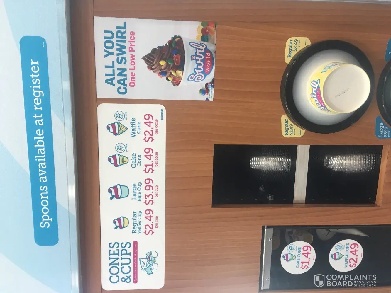Ms. T, Amie I went to the race trac to buy some ice cream and I use my Tumblr container because I am riding my motorcycle. So that the ice cream will not melt and stay frozen. Me. Amir has charged me $17 for supposedly 4 big cups from the swirl world. I try to tell her that I can use two small