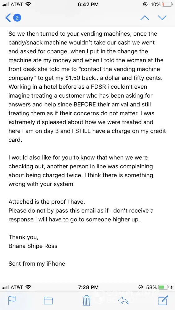 You will also see the first email I sent to the reservations manager and you'll see a more detailed email I sent to the gm.