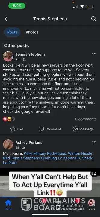 I so happen to be strolling on Facebook and I notice that a manager posted this unprofessional post. Although I don't work there, but I'm sure workers who need their jobs do. For me, anyone with a status of such should not be speaking or handling their self in such manner, should not be in their position. I am a person who respect my title and other people's feelings. I think meeting should be held before people hours are cut. I hope change will come, and the business is managed by people who understands how a franchise is ran.