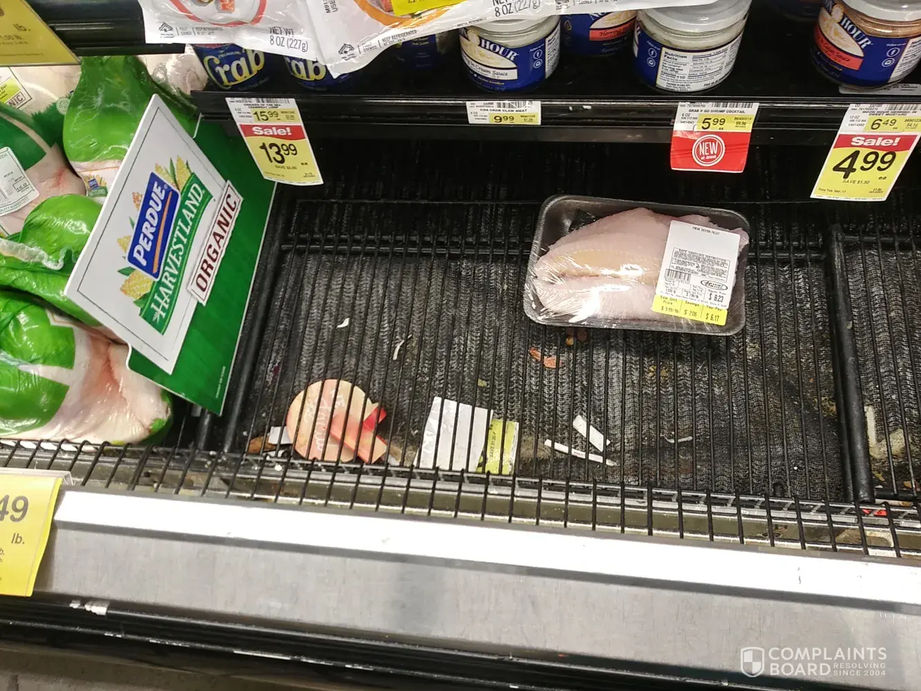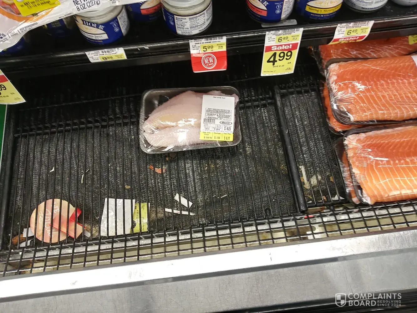 On Saturday September 8th 2019 I went to the jewels food store to purchase a couple items mainly I was looking for imitation crab legs so I can make me a seafood salad as I was purchased that I looked down and it did the freezer to me freezing they had a package fresh catfish I suppose it was fresh but all this trash they put non-food on top of trash and pretty much they whole freezer section where you pick up the fresh meat was just not cleaning un -sanitized to me I do have a picture that I took I shall earn $100 gift card for this because the manager they not doing what they supposed to do in that store as fast food we got to eat