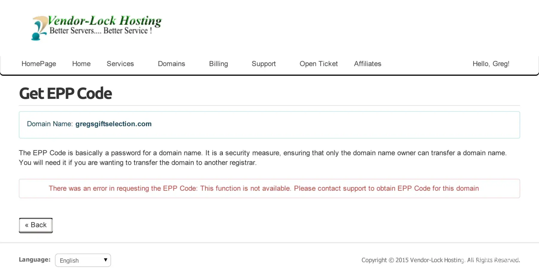 Ordered Domain names and paid for said Domains plus Hosting. When I went to transfer a Domain to another Host, I found that the Domain Names I had purchased were in Jeff Noyes name and not mine. After repeated requests for the EPP Codes, I had NO choice but to NOT renew the Domains. Have now lost 10+ Domain Names. Greg Burgess Have attached files. If you need anything else, please message me. Thank you for the support Greg