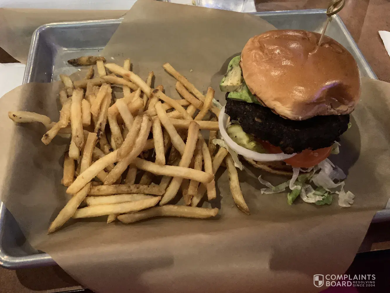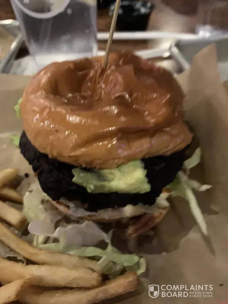 It just seems that the customer was looking for things to get upset about. Food costs too much? Surely this didn't come as a surprise, the prices are on the menu. The burger looks different than on the perfectly lit and arranged advertisement? Of course it does. But the bean patty looks pretty much the same if you account for the poor lighting. The rest of the complaints now seem like exaggerations by extension.