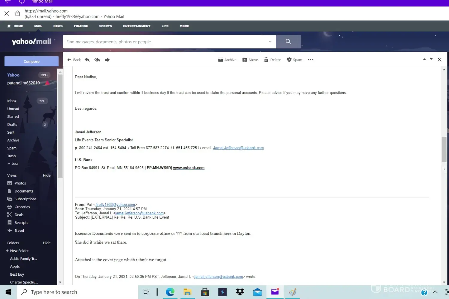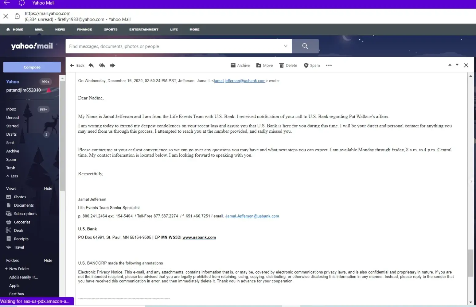 I am the executor of my aunt's estate. She had an account with State Farm Bank now US Bank. I have been calling for exactly 2 weeks today (since 10/21/2020) to get directions on how to submit the approved court paperwork, EIN number for estate, and new bank account for estate so this account can be liquidated and funds released to the estate.