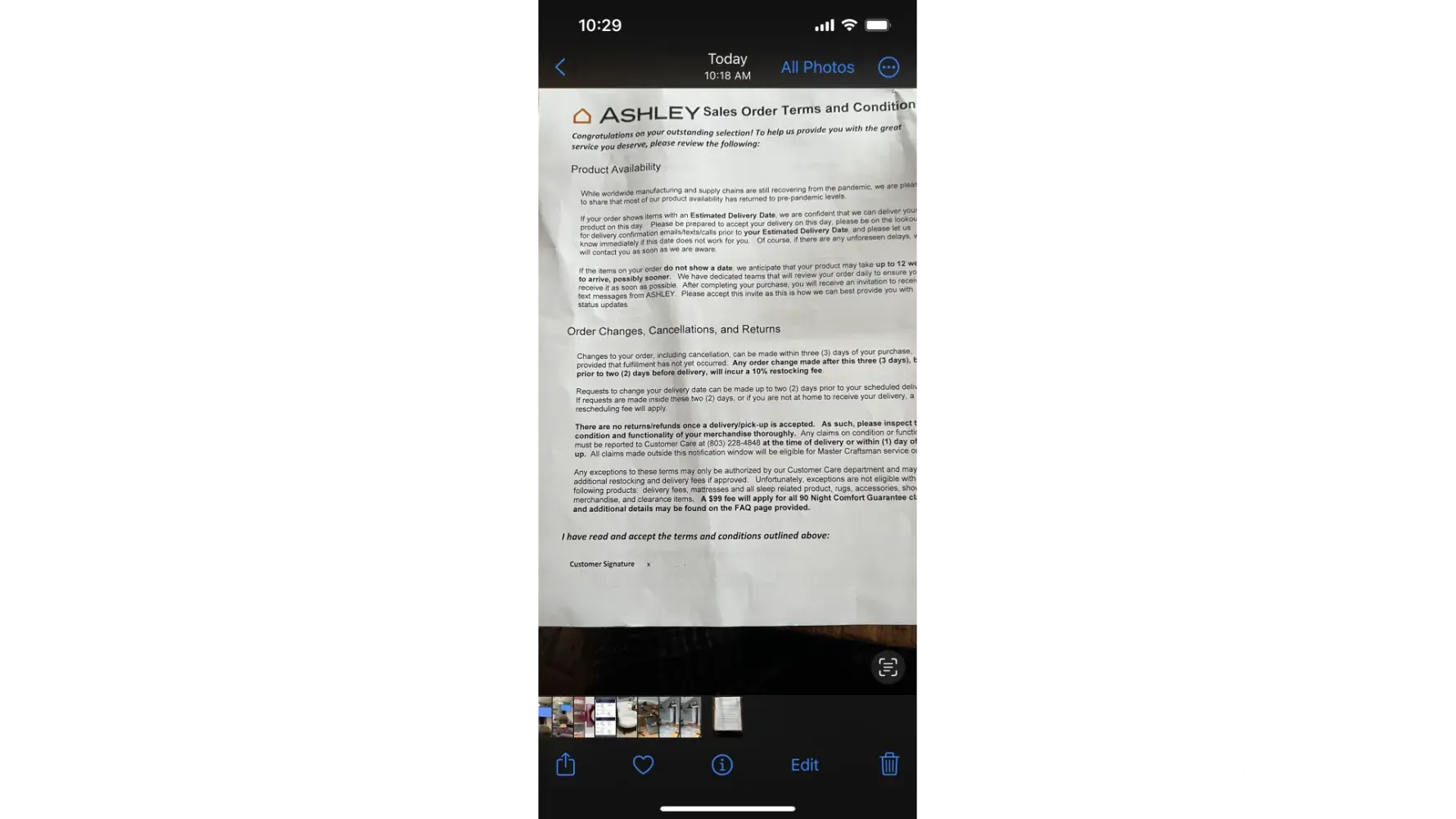 I purchased a floor lamp on the evening of 01/31/2023. After setting the lamp in the area I realized that it was too big and decided to return it. I reviewed the contract and read that they have a no return policy. At the time of purchase there was no mention of this policy. In addition, my copy of this policy contract was not signed by me. Early the next day I called and asked if there was any way I could return the lamp. They explained that all sales are final, they would not make any exception. I called again and explained that the sales agent never explained their policy and that I never signed the contract. They said sorry no exceptions. I saw the restocking fee, but that was never offered. This has been a very disappointing experience.