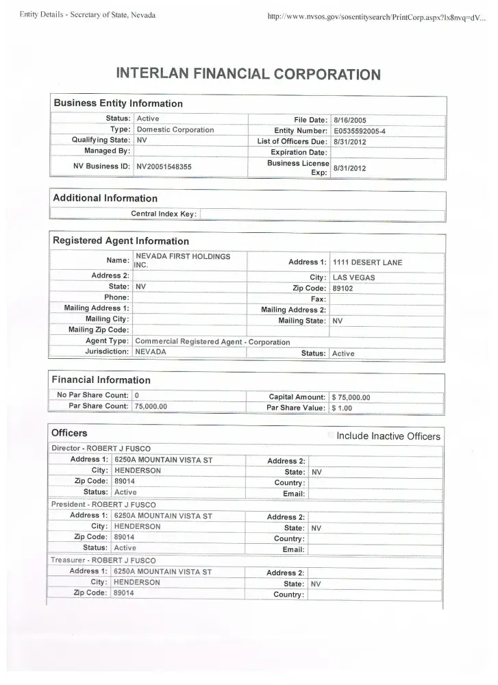 Business Name: INTERLAN FINANCIAL CORPORATION