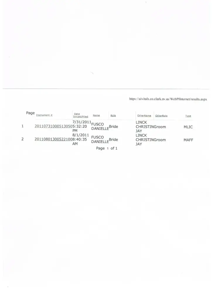 I have posted the public record marriage information, so you can see the name went from Danielle Fusco to Danielle Link