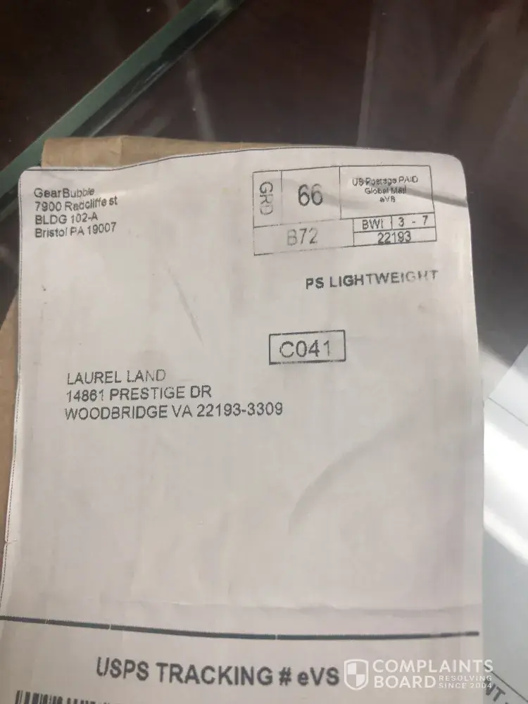 GearBubble has left an official reply on this complaint.