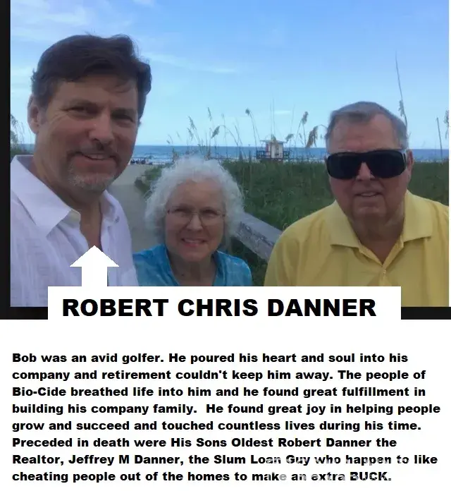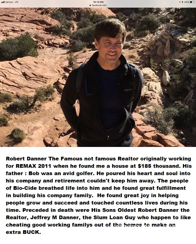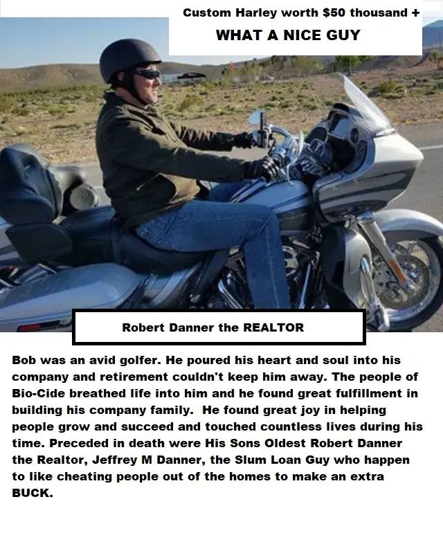 8 years later So the story goes. Mr. Jeffrey Mark Danner, also known as Jeff Danner, Jeffrey M Danner, Jeff Danner, who resides at 4205 Moorgate Dr Norman OK 73072. The Sons of Mr B Danner principle of Bio-Cide International. Oldest Son is Brother Robert Charles Danner a Las Vegas Realtor, Jeff mark Danner The Lender happily funded my Home loan at 720 Kenny way 89107 las Vegas NV So my lease to own cost me total $185 in 2011 Now X-mas 2017 during the holidays Without notice The constables at 7 am the morning 27 th Dec 2017 gave the 5 bedroom household 20 mins to leave or be arrested as the Danner brothers decided that Amanda Byools and her 5 children with 4 Dogs p and few toiletries and personal belongings The Danner Brothers 2017 Their Unscrupulous Real estate scam pointed at Mark Pears a DJ with a well-known club in Town also with a Large house and family.