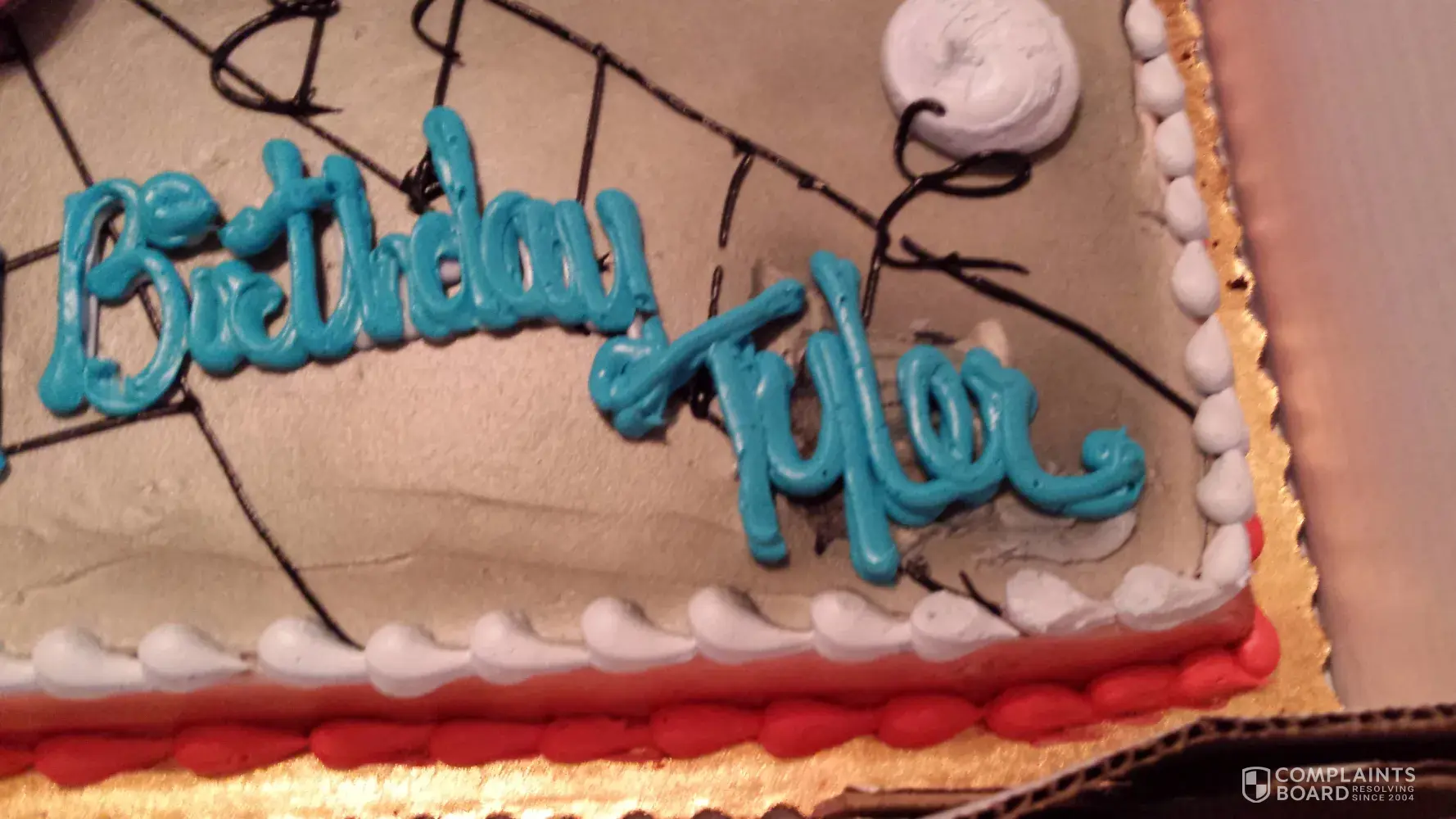 And you can see where they s raped off nick to fix the name to tyler..then had to add bigger writing cake looks crappy?...so I had to got to tops and get the right one made...ended up buying to cake ...thanks for crappy service..