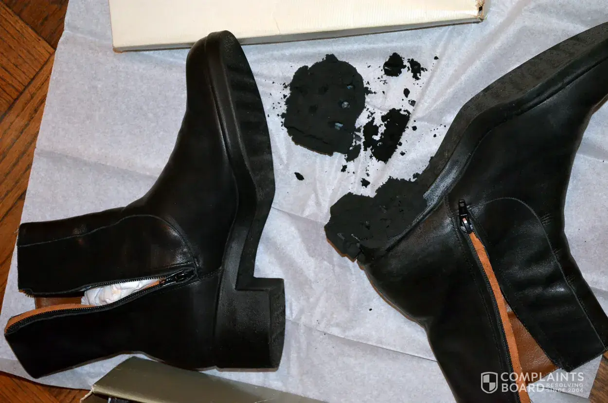 I purchased Easy Spirit boots a few seasons ago described as follows: Esbolder black easy soft #[protected], 9-1/2 D, bar code # [protected]. I wore the boots maybe about five times in the season of purchase. On 3/22/13 I got out the boots which had been stored in their original box in my closet. I put on one boot and reached for the other boot but then noticed that the heel of the boot I had on had completely crumbled into a mess. I paid about $150 for the boots. I have been struggling with unemployment for quite a while and can't afford to buy new boots every year and don't see why I should have to expect that I won't be able to have a pair of boots be wearable for more than one year. This is wrong on so many levels especially environmental considerations. I contacted Easy Spirit and was told that they would only issue a coupon for merchandise purchase as compensation on boots that had a "structural problem" and had purchased within a year. This problem of disintegrating heels & soles is now rampant and The Jones Group obviously is not upholding the standard they quote on their website "Jones has built a reputation for excellence in product quality and value" - what a laugh.