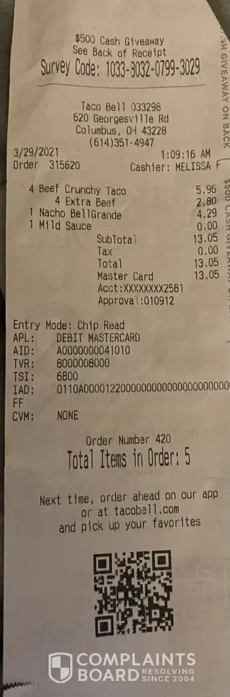 Taco Bell reviews and complaints 2