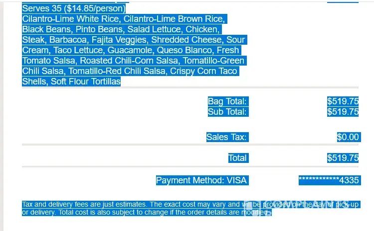 I ordered over $500 worth of Chipotle catering for a birthday party yesterday and I am not satisfied with the portion sizes and the fact that some of my food was completely frozen. Please assist me as to who I need to outreach to express my concerns. I ordered online and my confirmation number is C2367WWPZ. I uploaded my receipt for verification.