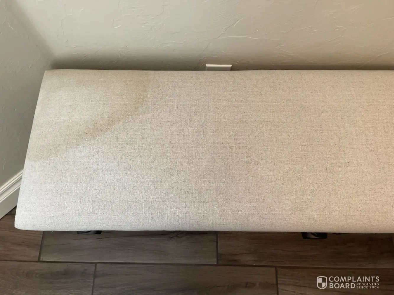 Desired outcome: I want the fabric on the bench cleaned or whatever it takes to get the water mark off.
