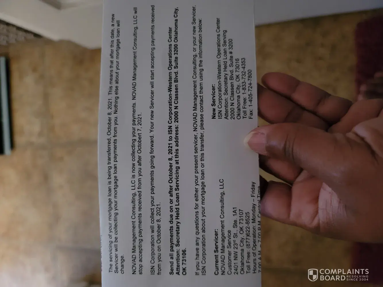 I received a letter dated September 22, 2021 stating my mortgage loan is being transferred from Novad Management Consulting LLC to ISN Corporation - Western Operations Center October 8, 2021. Send payments to 2000 N Classen Blvd, Suite 3200 Oklahoma City, oK 73106. My loan is not/has never been serviced by Novad Management Consulting, LLC.