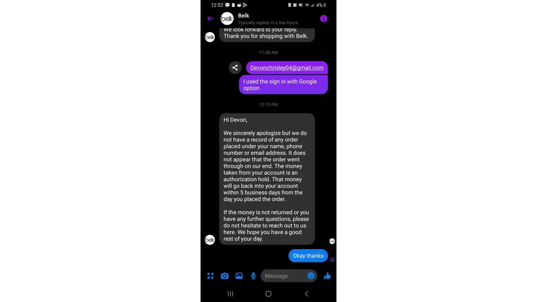 I attempted to make an order online, only to have the site say my payment card was not processed. I was never given an order number and when I checked my bank account, the money was taking out anyway. When calling customer service they kept asking for my order number and I kept explaining the payment showed not processed and I was never given a order number. Eventually I was told to wait and see if it dropped off my bank account which 7 days later it had not. I feel like they stole my money. I had to dispute the charge after that and my bank put a block on my bank card and I had to wait another 7-10 days for another card. All because Belk's on-line service is terrible. I will stick with Amazon for all my ordering now. Not to mention the customer service people were so rude I can't believe they are allowed to work in customer service jobs. Its apparent they have no concept of what its like to be a customer and feel cheated. I know one person complaining doesn't make a difference but I will make sure I tell at least 20 other people.