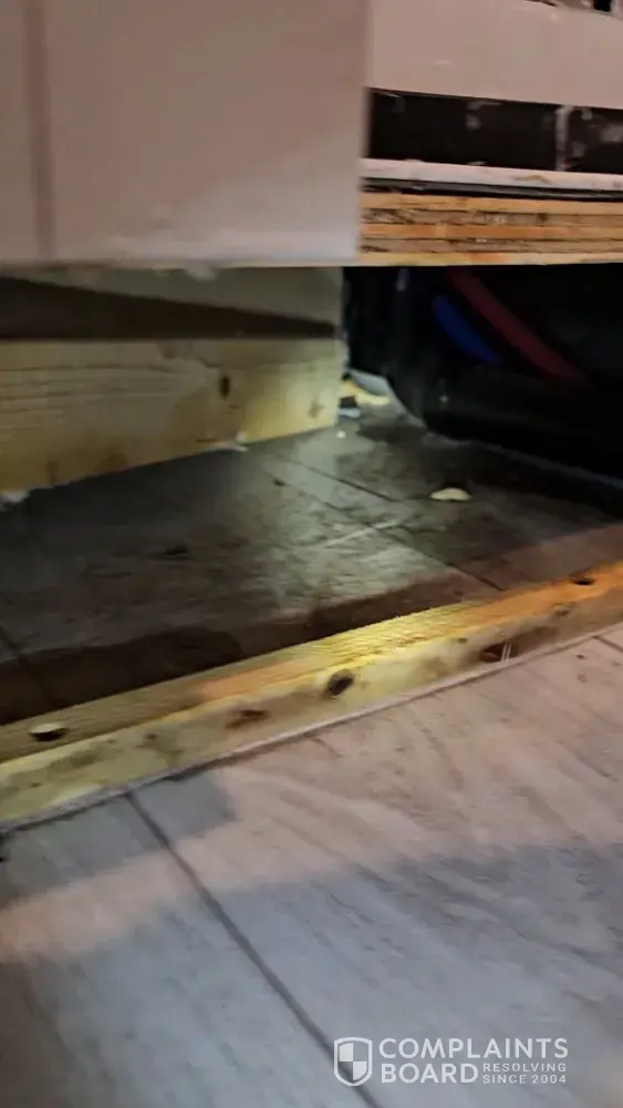 I have since replumbed the drain pipe and removed the damaged wood around the washer and the panels in the pass thru. The subfloor warp and bed area are still damaged as I don't have the ability to do the work myself.  Attached are pictures. I cant believe this was ignored despite my many times trying to get resolution and then it was just covered up and the source not fixed.  This caused mold growth and severe damage.
