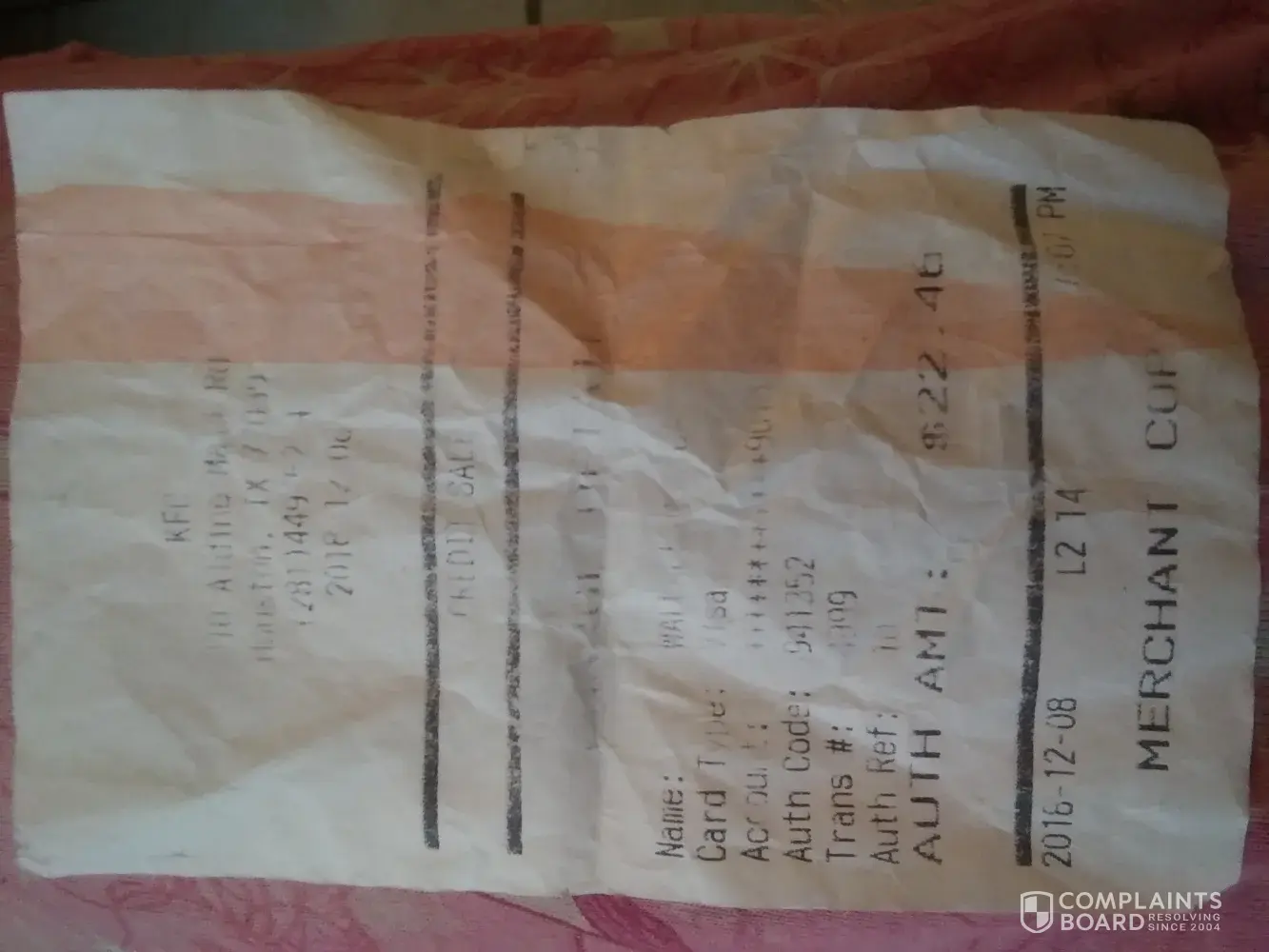 On Saturday 03/02/2024 at approximately 6:45p.m. placed an order for 3 wing combo and a spicy chicken sandwich. Was first told they were out of wings, and that they only had two wings. I asked how much two crispy wings would be and was then asked how many wings I would like... I stated at least three wings. The person said okay. we can do that. Get to the window order was handed to me as soon as I pulled up to the window. I opened the bag and box had 3 original wings cut in a nugget style format and a little larger than a chicken nugget and the sandwich bread was cold. I told the young lady at the window, and she spoke very little English and stated no it's not cold, it's probably the pickles. I informed her that pickles would not make a bun cold. After going back and forth I finally convinced her that the bread was cold, so she offered to warm the bun. I also informed her about the wings, that I ordered crispy wings and the size of the original that I was given. I then asked her for the store phone number because of the service that was being demonstrated. She stated she didn't know the phone number, so I asked for the manger. She said she was taking an order. I said I will wait. So, the other young lady came to the window, and I explained to her what transpired, and she just looked at me and I asked her for the phone number of the store, and she stated she didn't know. I then asked for a receipt she said they didn't have receipts. The receipt issue has been going on for years. My sister has to give them the cell phone and they will take a picture of the total cost of the meal because they don't have receipt paper, which is totally unacceptable. I asked the last young lady her name because corporate or management needs to be aware what is going on at this location and that young adults should not be operating a large established business as KFC without proper supervision. She told me her name was Joanna and the manager is Daisy who was not present. Please have a regional manager or someone in leadership make rounds to this location 5010 Aldine Mail Rd Houston, TX 77039 and bring this store up to standards that KFC stands for. This was truly a disappointing experience, once again. Sincerely