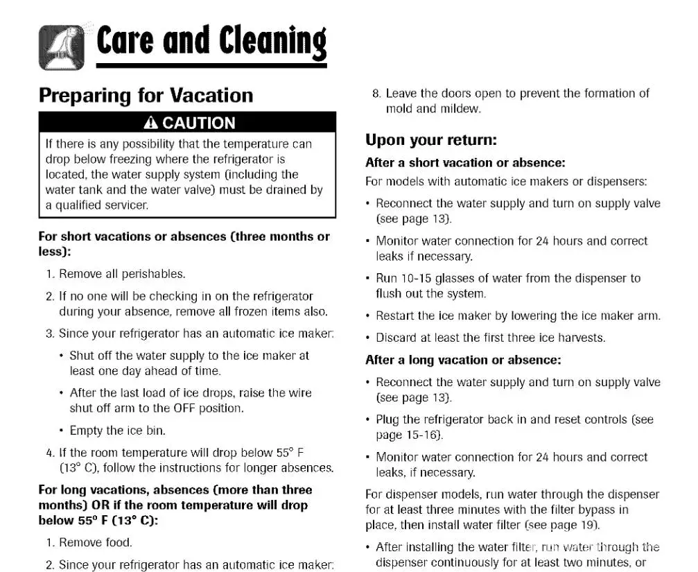 4. If the room temperature will drop below 55°F(13°C), follow the instructions for longer absences.