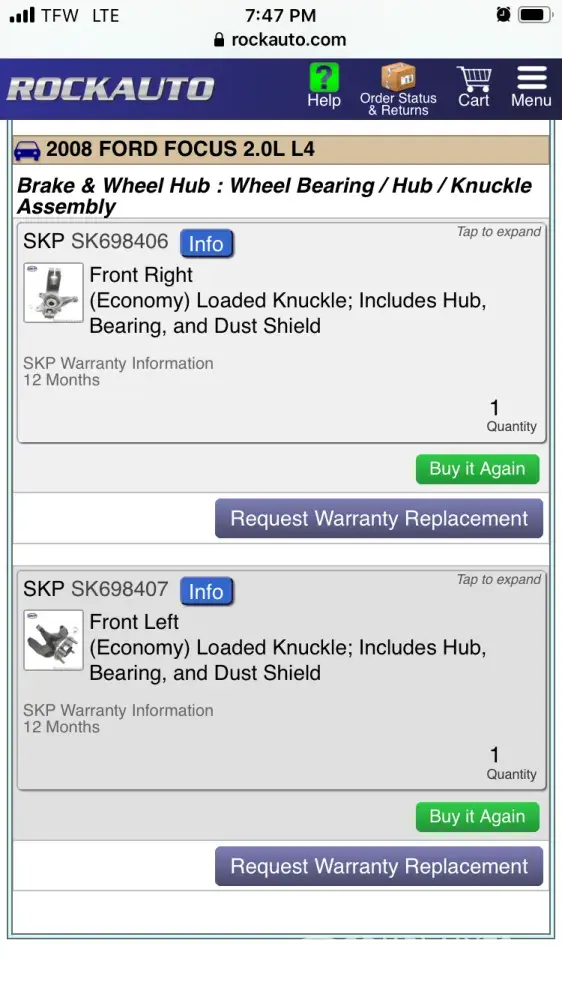 Their customer service is seriously ridiculous. I tried to get them to reimburse me for repairs and it only gave me an option of return. The part is already on the car, why do I have to return it and why do you offer repair reimbursement and not have an efficient website that can either A. process the reimbursement (or at least try to some other way) and B. Provide you with somebody in customer service to help you cause they automatically say on the phone call to them that they can't talk about service issues.