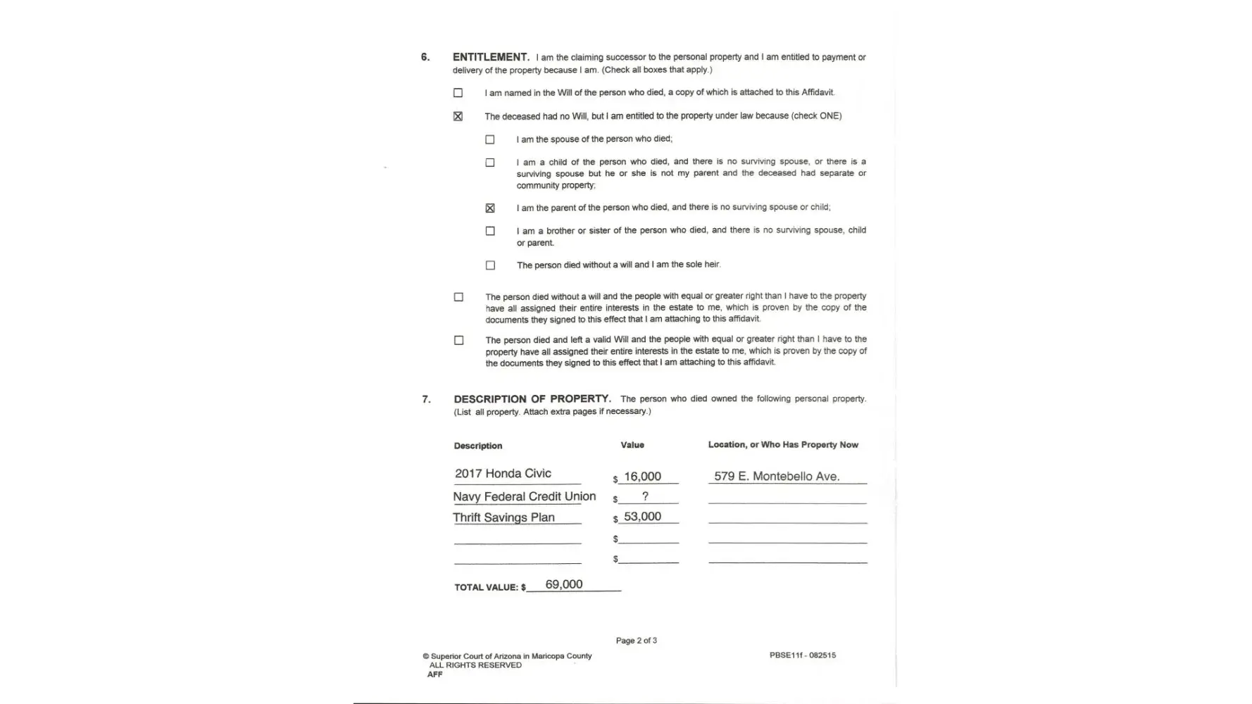 The form Affidavit I provided to USAA was obtained from the Maricopa Superior Court in Arizona. I used their form for the sake of convenience. However, Arizona Revised Statute 14-3971 states,