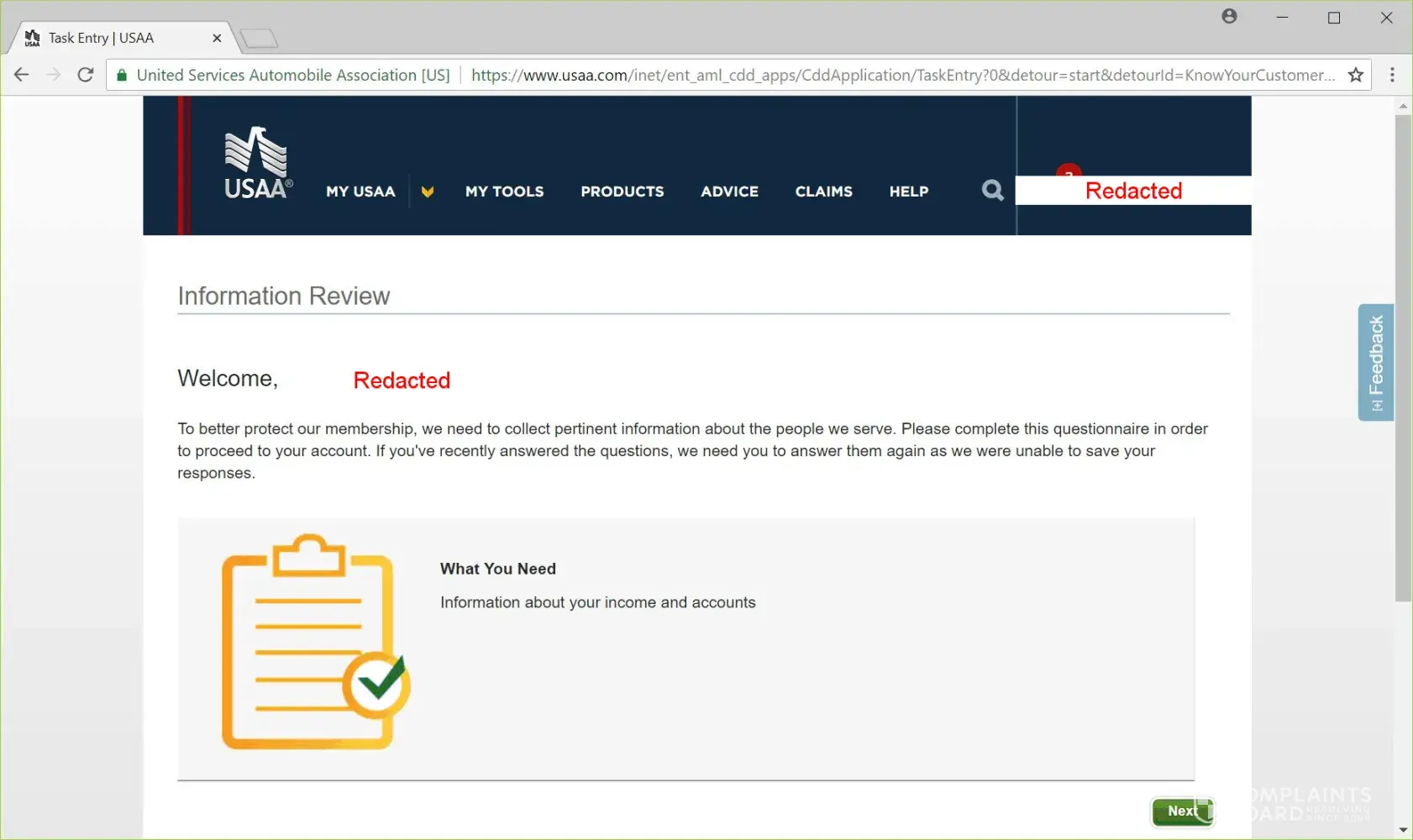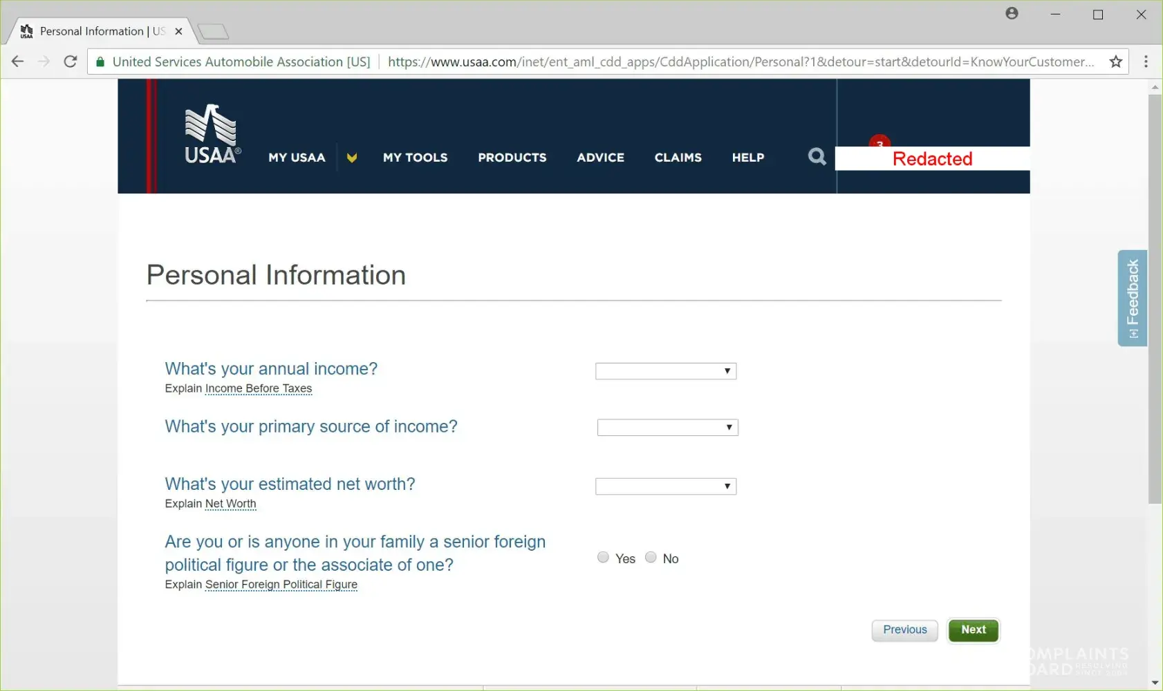 Desired Resolution: Make it so that not answering the intrusive survey described above no longer blocks online access to my USAA accounts. Preferred: completely vanquish the intrusive survey. Alternative: make answering the survey optional in perpetuity, with a check box equivalent to "Never show this survey to me again". Perhaps simplest, from USAA's standpoint: for each question, include a selection "Prefer not to answer".