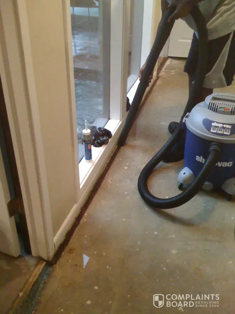 C. Equipment was bought to dry vac to clean up the water and the areas on the walls repaired.