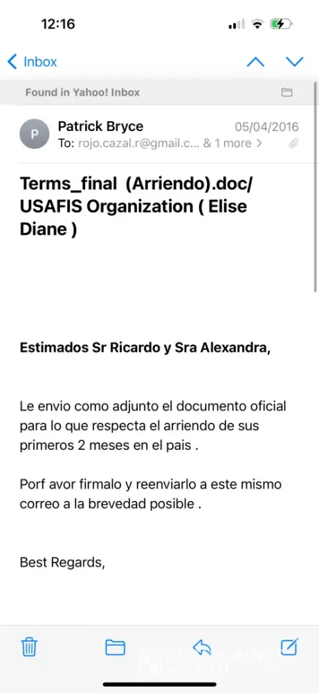 Realice un pago parcial por $400.00 de tarjeta visa de mi esposa, y por temas familiares no podremos seguir conel programa ya que un familiar tiene COVID-19 y esta muy grave. Csr.@usafis.org el 12 de enero 15:04 patrrick.bryce@usafis.org también de este correo. He escrito devuelta y no me contestan. 1-646-517-6786 de este número me llamaron. 1 917-717-5946 de este otro me llamo JAMES SMITH 1-646-680-0945 me llamaron también.