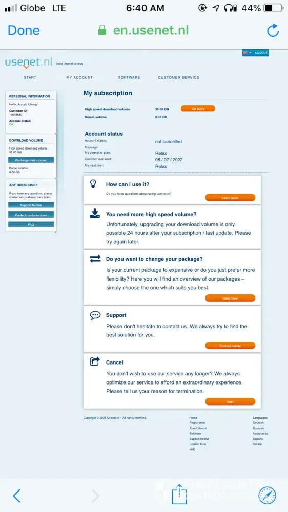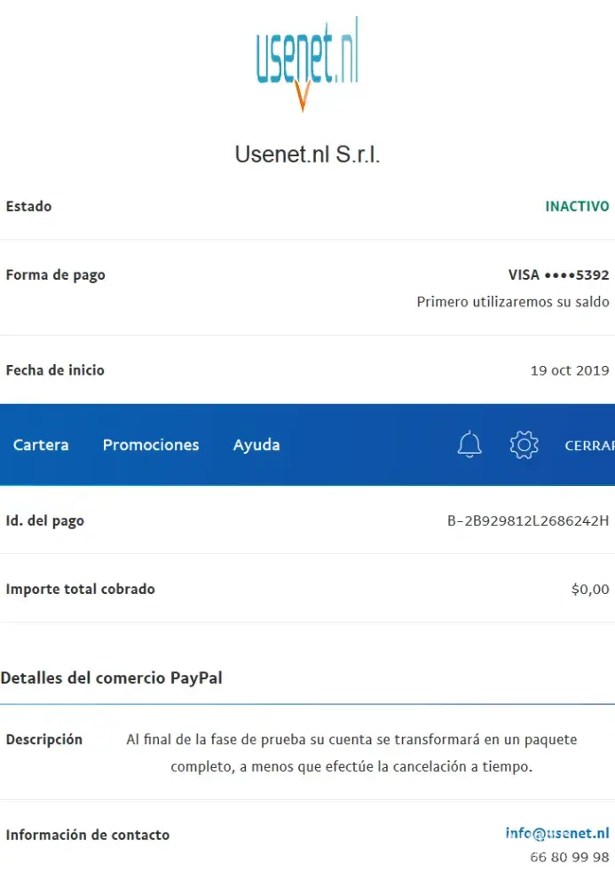 On November 22, 2021 I subscribed to a trial period of 14 days to be billed €8/month unless unsubscribed. I had to give my PayPal details to create the usenet.nl account. Instantly, I was charged to €99, 96 for a yearly Relax plan. Since then PayPal cancelled my billing agreement with them, and I've been trying every possible way available in my country to unsubscribe, up to a dead end.