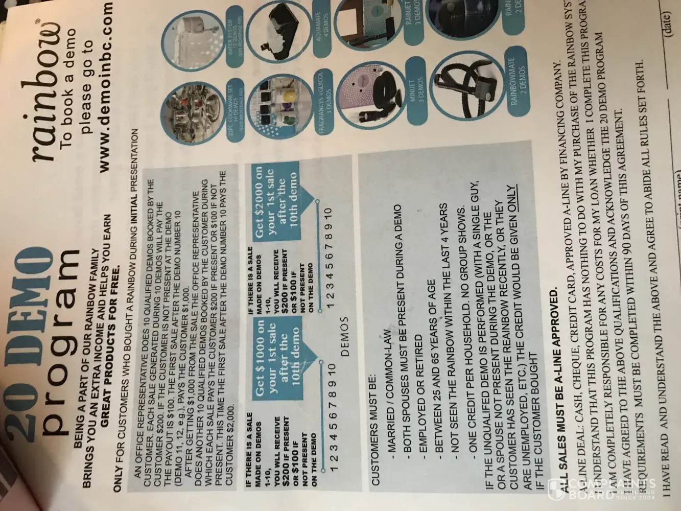 To Whom It may Concern, I am writing this letter to show my complaint and disappointment about this Rainbow Vaccum. What we like about this Vaccum is that we are amazed about the health benefits that it can clean air and it can give to our family especially to my son who used to have an asthma. May 2018 when the agent Jerald Calinao went to our house...