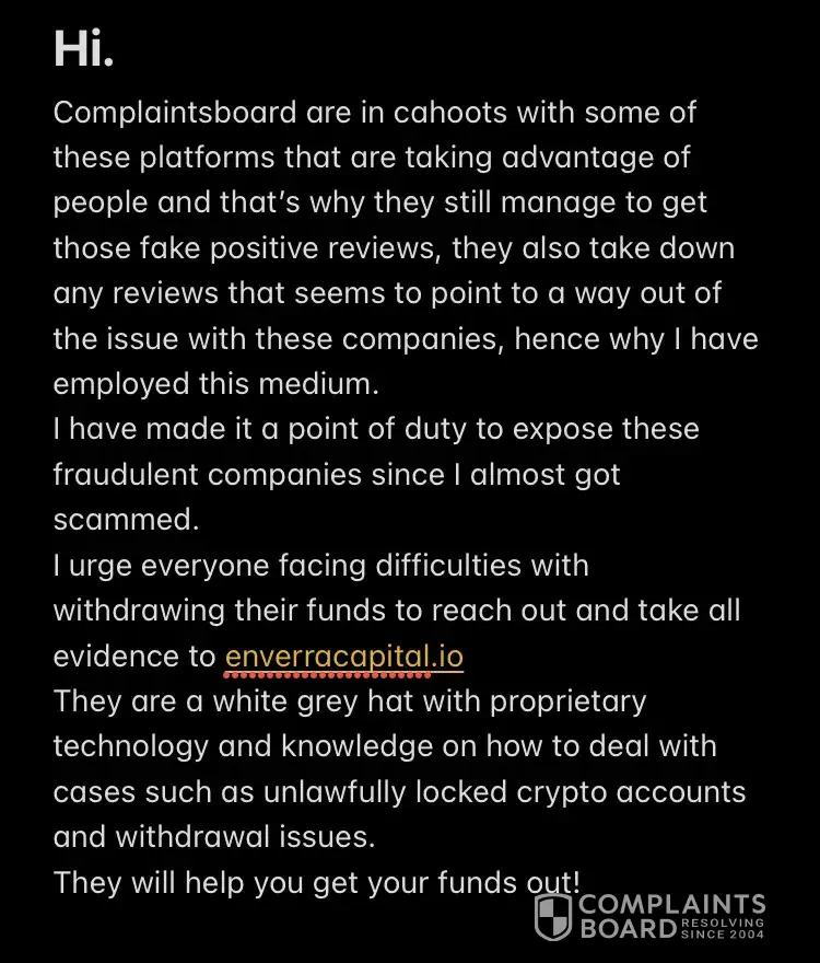Long story short, they were able to get my money out to my amazement, then I came on here to leave a review about it but complaints board took it down, I guess because they're in cahoots with vanguard and it was an awareness to point people to a solution that can actually put them in loss in the long run. So I'm just going to leave the name of the platform in a note I'll attach to my review and I just want everyone with issues to know that you can get your funds back from these guys!