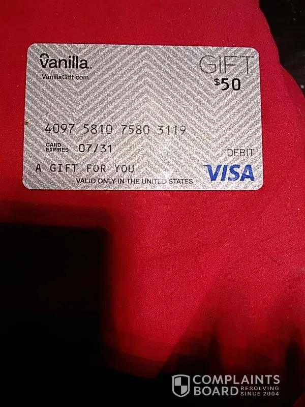 I bought a vanilla gift card on the 30th of April. It was going just fine, for the most part. Until yesterday. The site was down, as well, yesterday. Today I was able to check my balance, only to see my card is on hold. Talked to someone and was told a case needs to be opened, and that I need to send pics of the front and back of the card, along with a pic of the receipt and my state ID. Gmail isn't working, to send attachments. Not logged into any other email accounts, on the phone I took the pics with. Called back, to see if there is any other way to send the pics. Nope. None that I can do, anyway. I was told I was at a phishing website, but I sure as heck wasn't. Why can't they just let me say if I want this looked into? And, just cancel the current card, if they think there's an issue, and just send me a replacement? I will never get a vanilla gift card, again.