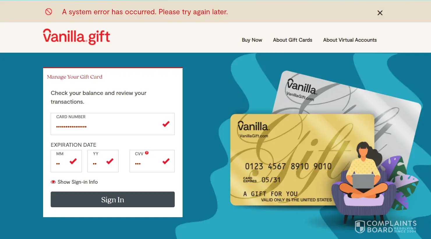 Vanilla Gift Cards Vanilla Gift Card - Funds Stolen