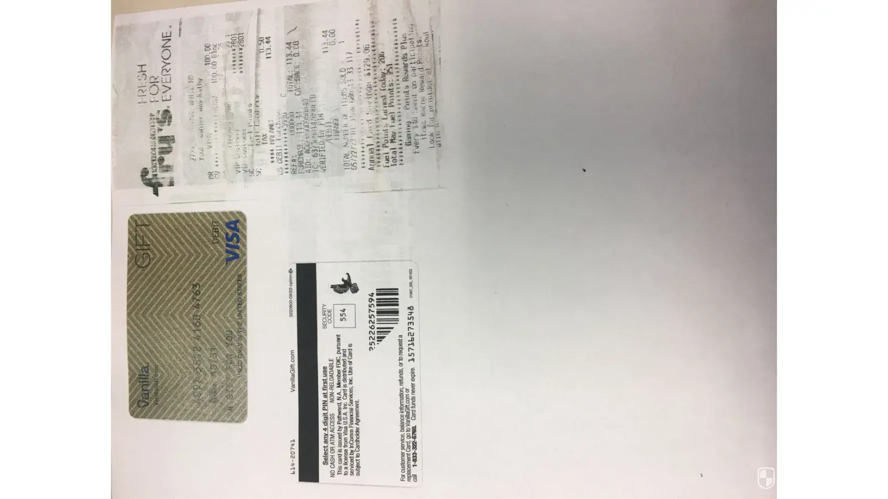 Vanilla Gift Cards 3 cards $500.00 each Compromised. Receipts CVS Total $1,520. Total.