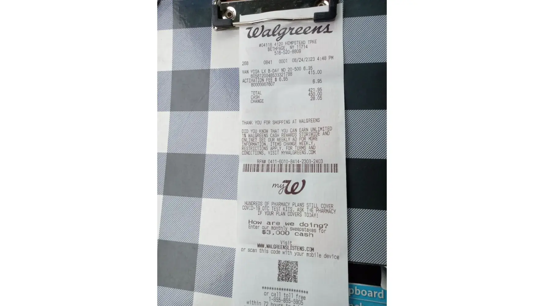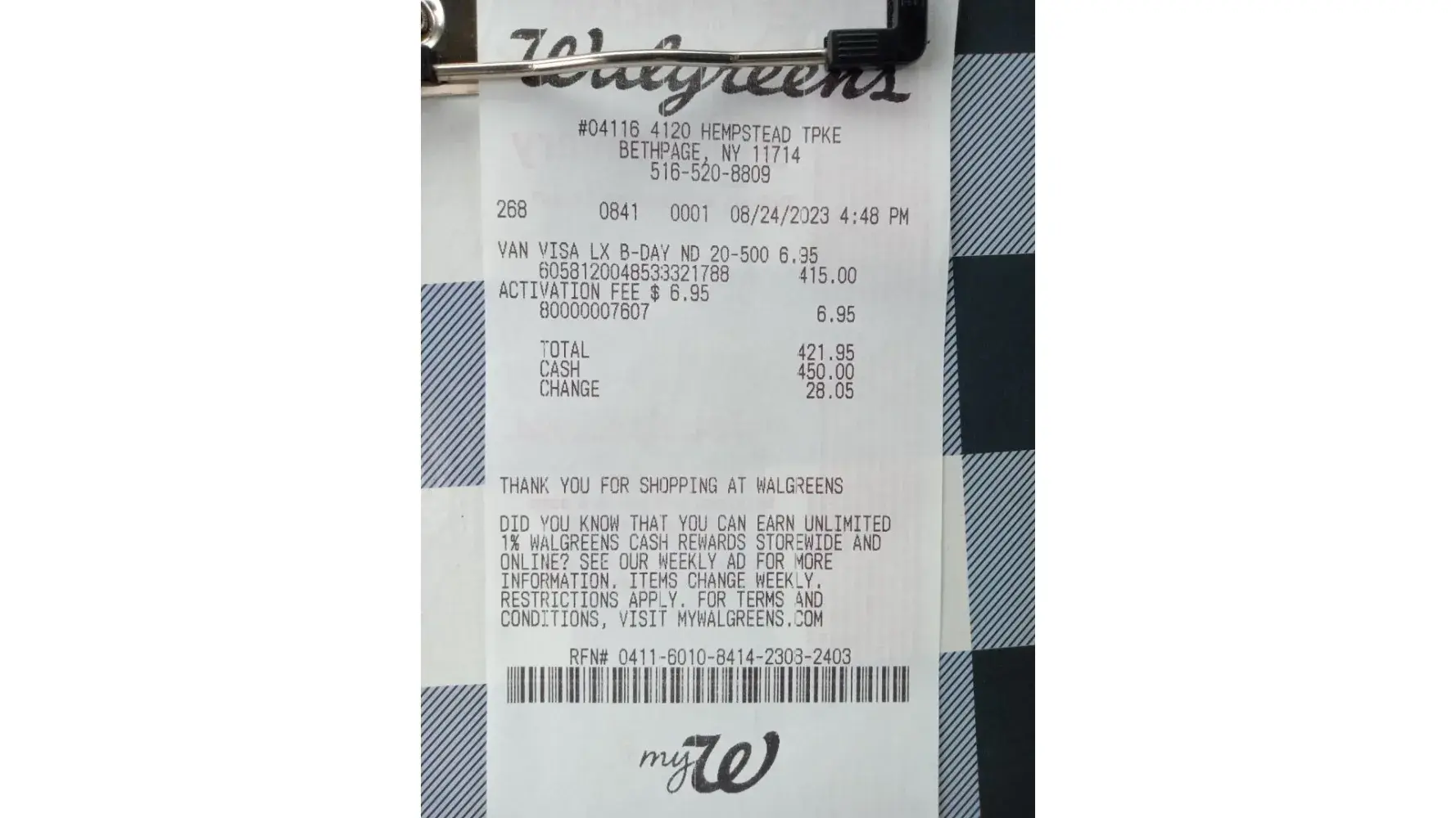I purchased a Vanilla Visa gift card from a local Walgreens back in April but the card came defective. There were only 12 instead of 16 numbers on the front like a regular card would have.
