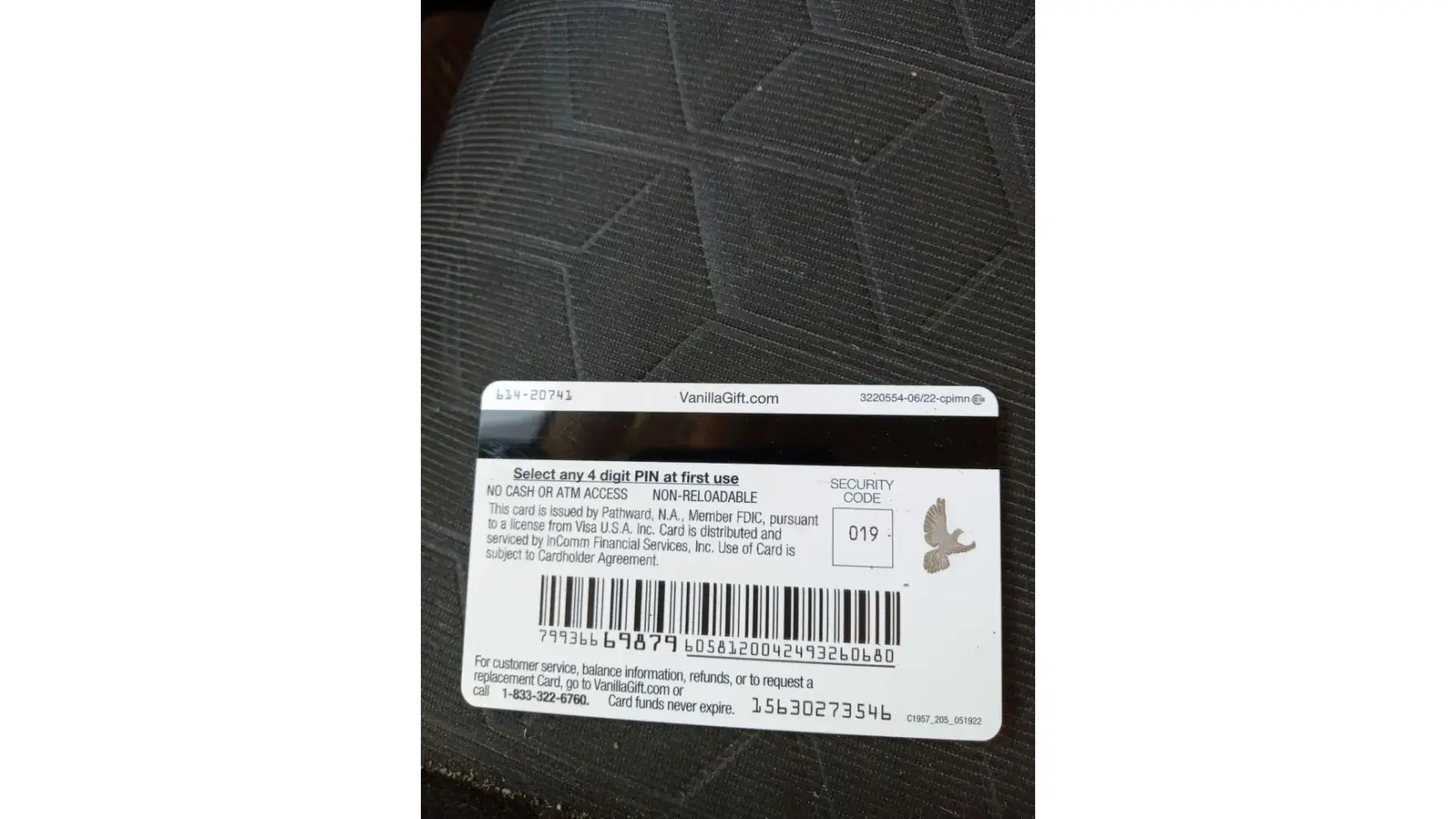 Defective vanilla gift card - only 12, not 16, digits