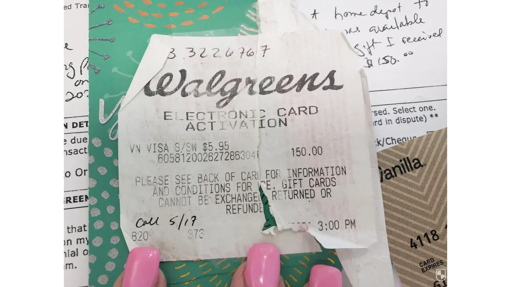 I received a $150.00 Vanilla Gift Card from a client in November or December 2021. I opened it to use it at a Home Depot months later. When the cashier ran it she told me it only had $66.00 on it. I never used it. I have a copy of the receipt showing my client paid $150.00 at a Walgreens. When you call to check the balance it shows no other transaction than my Home Depot.