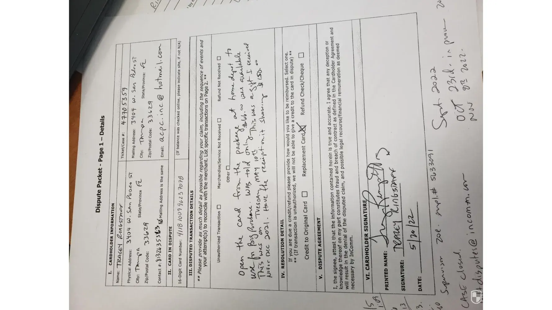 I have the dispute form from May 2022.