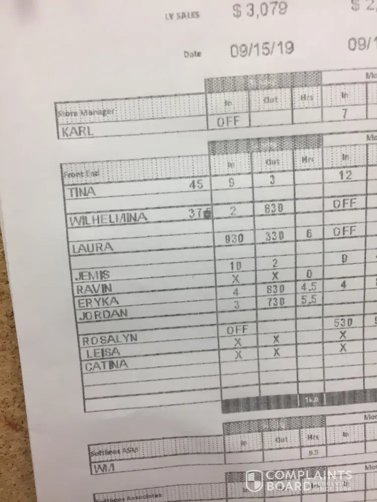 The following week schedule has never done on time then when you call to get the schedule the managers have no clue as to what it is so therefore you don't know what hours you're supposed to work it's hard working and having a home life knowing what you're doing from day today the people in the stores are very very rude a lot of people get away with everything and the ones that are working make one mistake and are made an example of I would not recommend working in those stores unless you're willing to hear drama and never know your work schedule and have no outside life